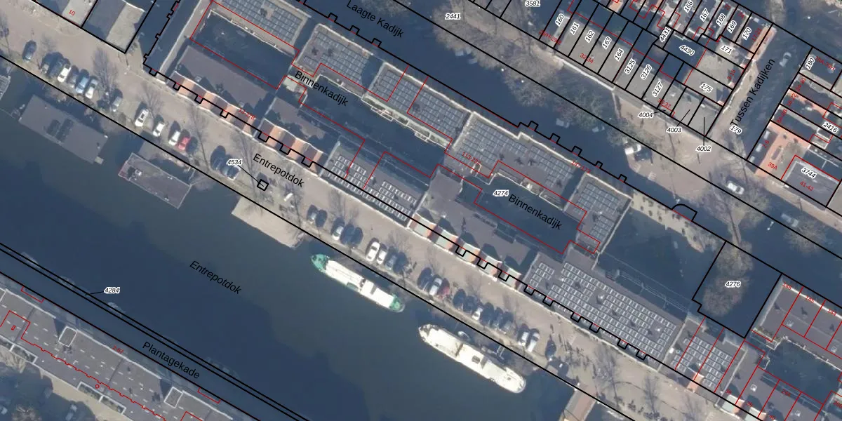 Het perceel waarop Entrepotdok 25 staat heeft een oppervlakte van 7605 m². Dit is een zeer groot perceel. De perceeloppervlakte wordt geregistreerd door het Kadaster. Gedetailleerde informatie over de maten van dit perceel kunt u vinden in het rapport Kadastrale kaart met maatvoering van Entrepotdok 25.