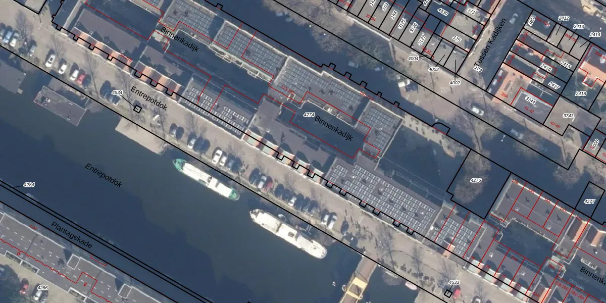 Het perceel waarop Entrepotdok 28-B staat heeft een oppervlakte van 7605 m². Dit is een zeer groot perceel. De perceeloppervlakte wordt geregistreerd door het Kadaster. Gedetailleerde informatie over de maten van dit perceel kunt u vinden in het rapport Kadastrale kaart met maatvoering van Entrepotdok 28-B.