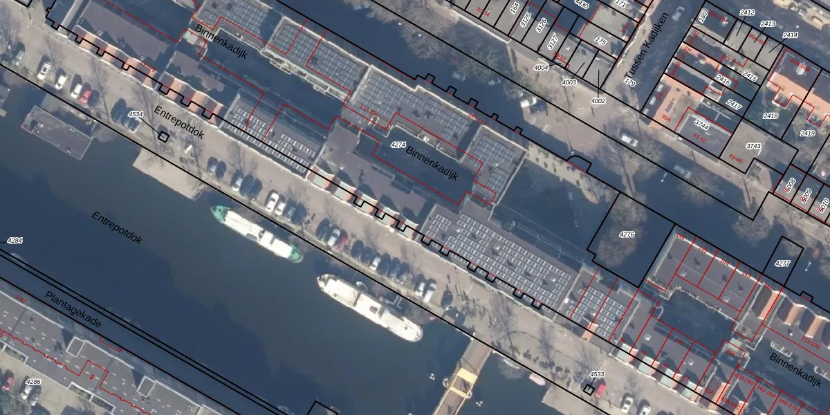 Het perceel waarop Entrepotdok 29-B staat heeft een oppervlakte van 7605 m². Dit is een zeer groot perceel. De perceeloppervlakte wordt geregistreerd door het Kadaster. Gedetailleerde informatie over de maten van dit perceel kunt u vinden in het rapport Kadastrale kaart met maatvoering van Entrepotdok 29-B.