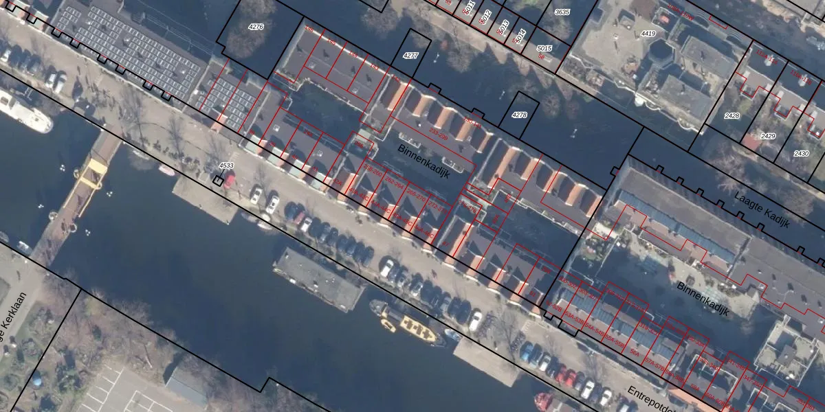 Het perceel waarop Entrepotdok 45-C staat heeft een oppervlakte van 7605 m². Dit is een zeer groot perceel. De perceeloppervlakte wordt geregistreerd door het Kadaster. Gedetailleerde informatie over de maten van dit perceel kunt u vinden in het rapport Kadastrale kaart met maatvoering van Entrepotdok 45-C.