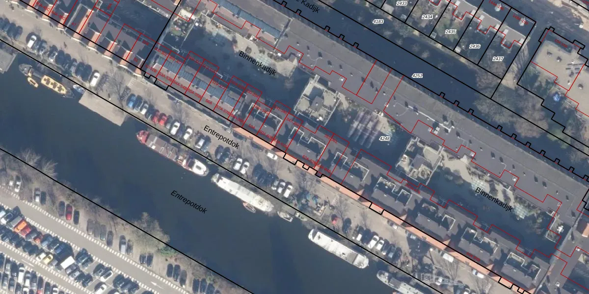Het perceel waarop Entrepotdok 62-A staat heeft een oppervlakte van 7844 m². Dit is een zeer groot perceel. De perceeloppervlakte wordt geregistreerd door het Kadaster. Gedetailleerde informatie over de maten van dit perceel kunt u vinden in het rapport Kadastrale kaart met maatvoering van Entrepotdok 62-A.