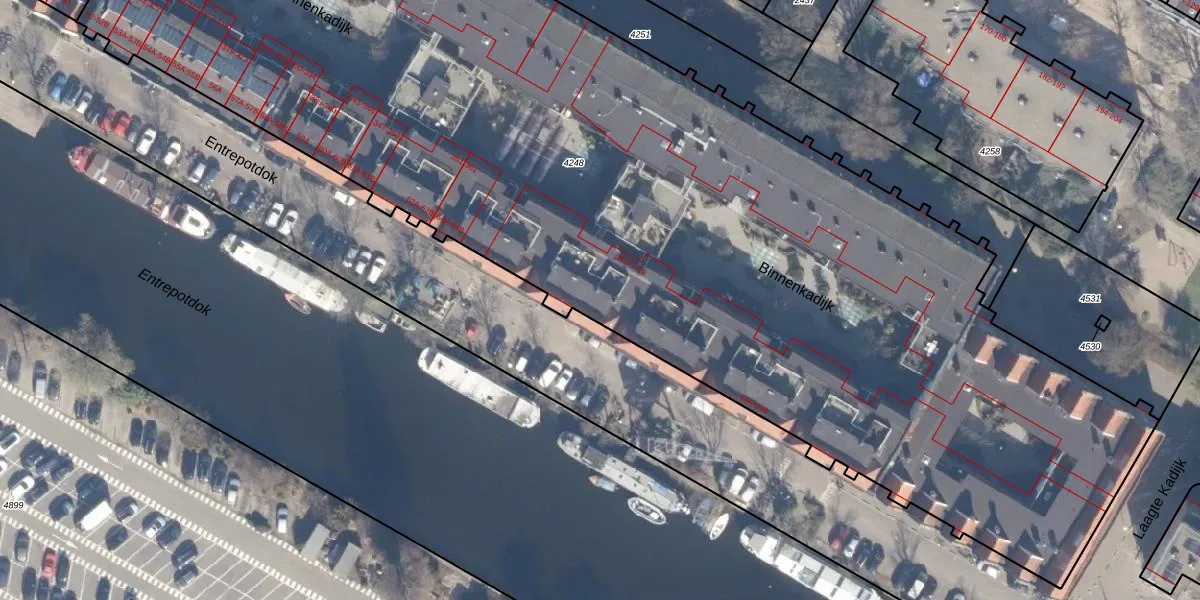 Het perceel waarop Entrepotdok 69-B staat heeft een oppervlakte van 7844 m². Dit is een zeer groot perceel. De perceeloppervlakte wordt geregistreerd door het Kadaster. Gedetailleerde informatie over de maten van dit perceel kunt u vinden in het rapport Kadastrale kaart met maatvoering van Entrepotdok 69-B.