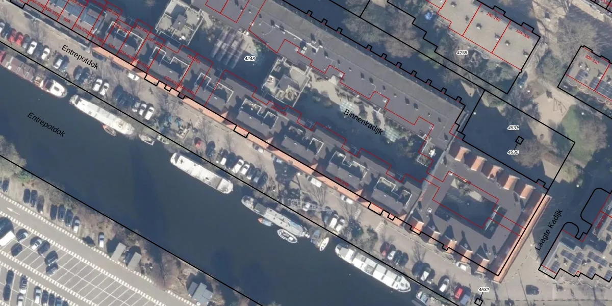 Het perceel waarop Entrepotdok 72-B staat heeft een oppervlakte van 7844 m². Dit is een zeer groot perceel. De perceeloppervlakte wordt geregistreerd door het Kadaster. Gedetailleerde informatie over de maten van dit perceel kunt u vinden in het rapport Kadastrale kaart met maatvoering van Entrepotdok 72-B.