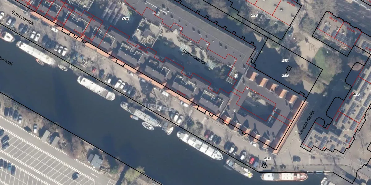 Het perceel waarop Entrepotdok 75-B staat heeft een oppervlakte van 7844 m². Dit is een zeer groot perceel. De perceeloppervlakte wordt geregistreerd door het Kadaster. Gedetailleerde informatie over de maten van dit perceel kunt u vinden in het rapport Kadastrale kaart met maatvoering van Entrepotdok 75-B.