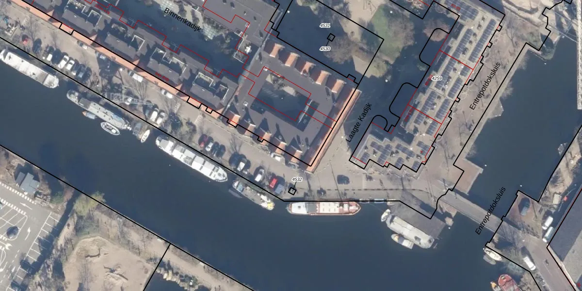 Het perceel waarop Entrepotdok 83-A staat heeft een oppervlakte van 7844 m². Dit is een zeer groot perceel. De perceeloppervlakte wordt geregistreerd door het Kadaster. Gedetailleerde informatie over de maten van dit perceel kunt u vinden in het rapport Kadastrale kaart met maatvoering van Entrepotdok 83-A.