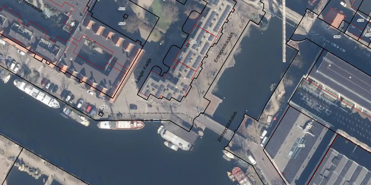 Entrepotdoksluis 4 is gelegen op kadastraal perceel ASD11O4259. Deze kadastrale aanduiding is uniek en wordt gebruikt door het Kadaster om eigendomsrechten en andere zakelijke rechten vast te leggen. Het perceel maakt onderdeel uit van de kadastrale gemeente Amsterdam.