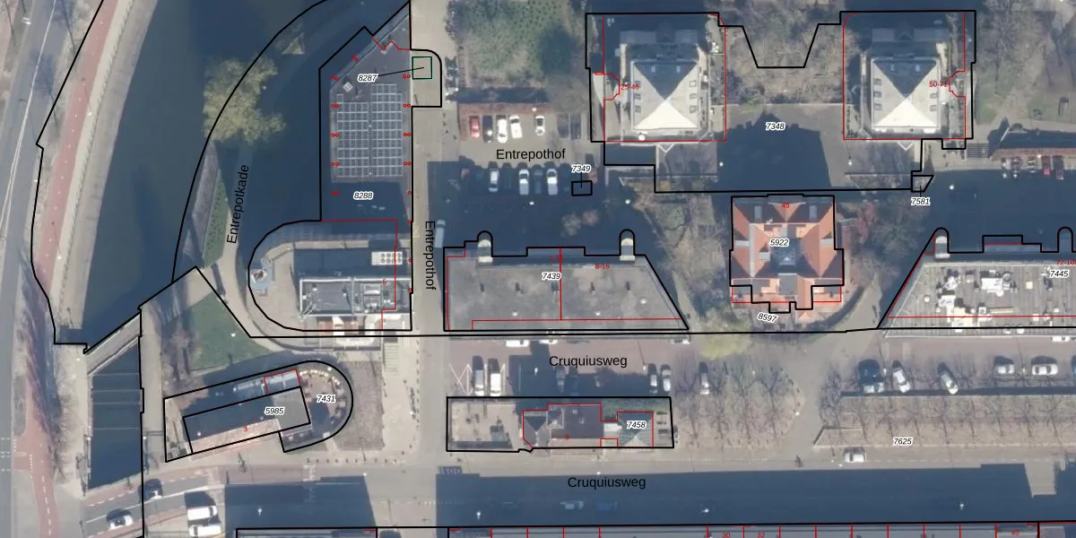 Het perceel waarop Entrepothof 1 staat heeft een oppervlakte van 635 m². Dit is een groot perceel. De perceeloppervlakte wordt geregistreerd door het Kadaster. Gedetailleerde informatie over de maten van dit perceel kunt u vinden in het rapport Kadastrale kaart met maatvoering van Entrepothof 1.