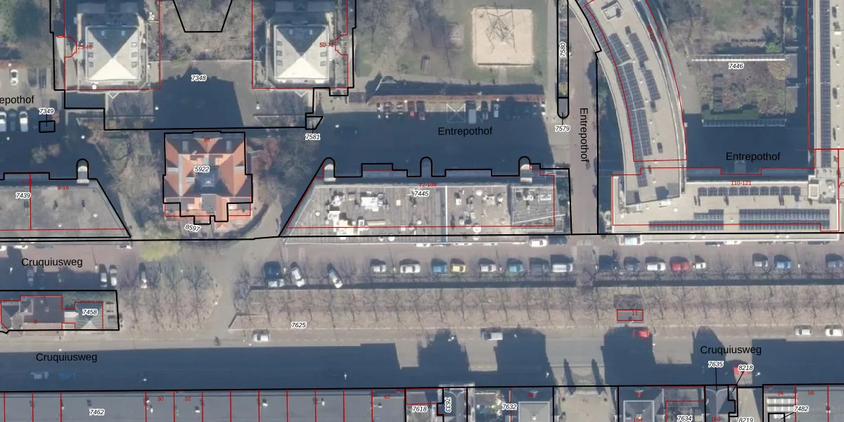 Het perceel waarop Entrepothof 102 staat heeft een oppervlakte van 1045 m². Dit is een zeer groot perceel. De perceeloppervlakte wordt geregistreerd door het Kadaster. Gedetailleerde informatie over de maten van dit perceel kunt u vinden in het rapport Kadastrale kaart met maatvoering van Entrepothof 102.