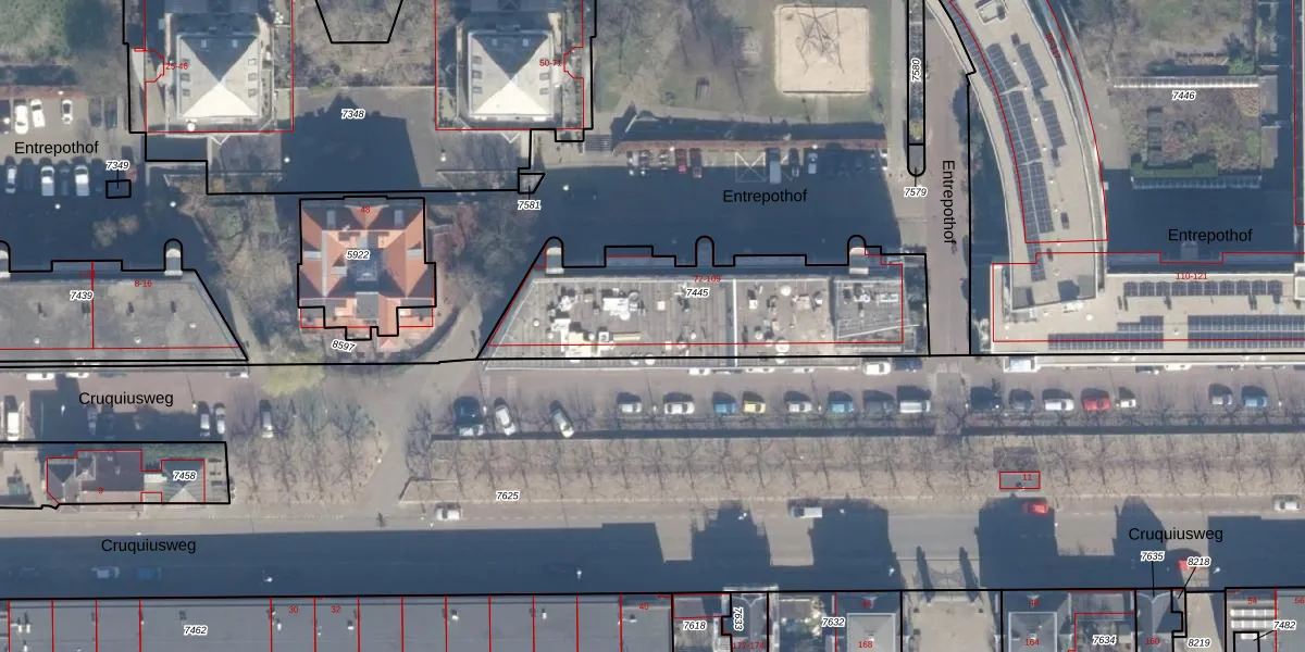 Entrepothof 107 is gelegen op kadastraal perceel ASD02A7445. Deze kadastrale aanduiding is uniek en wordt gebruikt door het Kadaster om eigendomsrechten en andere zakelijke rechten vast te leggen. Het perceel maakt onderdeel uit van de kadastrale gemeente Amsterdam.