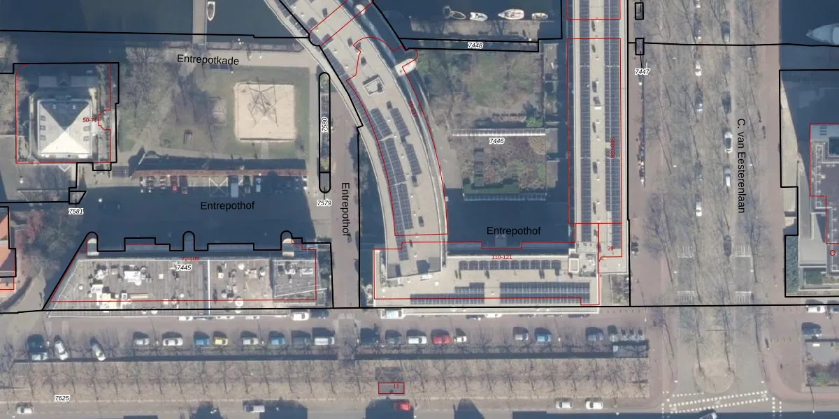 Het perceel waarop Entrepothof 131 staat heeft een oppervlakte van 6055 m². Dit is een zeer groot perceel. De perceeloppervlakte wordt geregistreerd door het Kadaster. Gedetailleerde informatie over de maten van dit perceel kunt u vinden in het rapport Kadastrale kaart met maatvoering van Entrepothof 131.