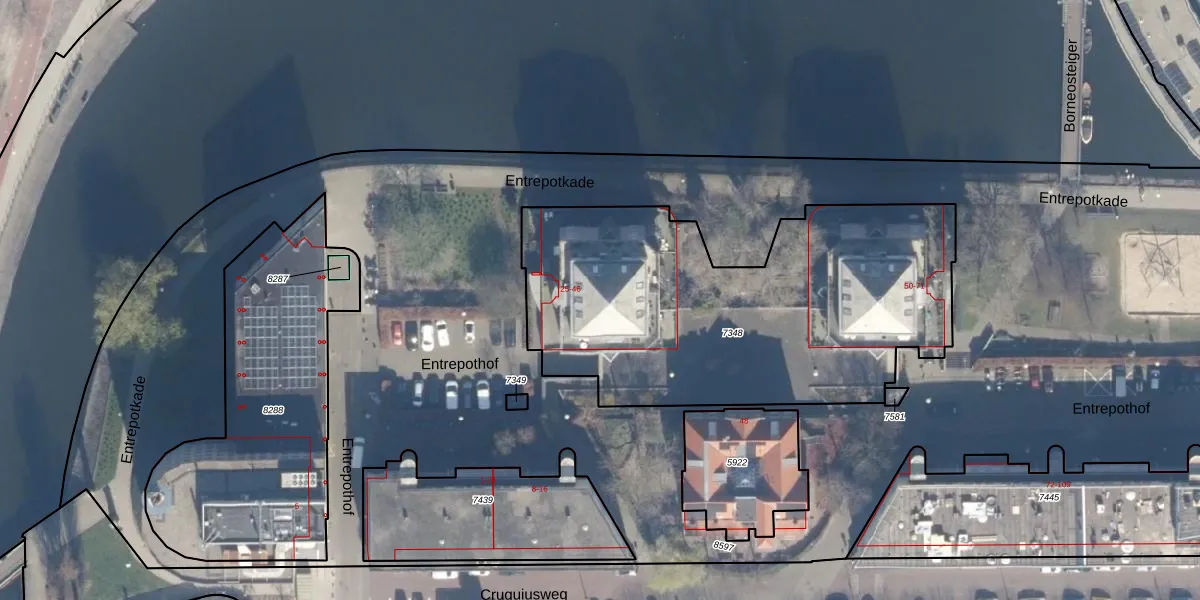 Het perceel waarop Entrepothof 28 staat heeft een oppervlakte van 2086 m². Dit is een zeer groot perceel. De perceeloppervlakte wordt geregistreerd door het Kadaster. Gedetailleerde informatie over de maten van dit perceel kunt u vinden in het rapport Kadastrale kaart met maatvoering van Entrepothof 28.