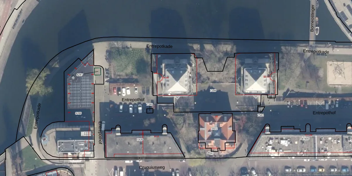 Het perceel waarop Entrepothof 38 staat heeft een oppervlakte van 2086 m². Dit is een zeer groot perceel. De perceeloppervlakte wordt geregistreerd door het Kadaster. Gedetailleerde informatie over de maten van dit perceel kunt u vinden in het rapport Kadastrale kaart met maatvoering van Entrepothof 38.