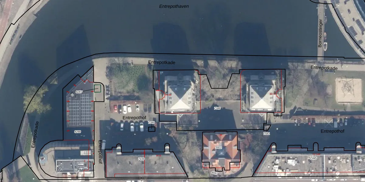 Het perceel waarop Entrepothof 46 staat heeft een oppervlakte van 2086 m². Dit is een zeer groot perceel. De perceeloppervlakte wordt geregistreerd door het Kadaster. Gedetailleerde informatie over de maten van dit perceel kunt u vinden in het rapport Kadastrale kaart met maatvoering van Entrepothof 46.