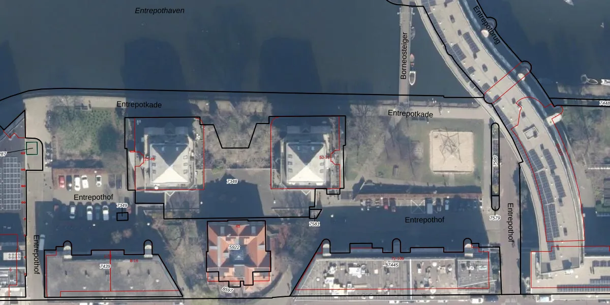 Het perceel waarop Entrepothof 68 staat heeft een oppervlakte van 2086 m². Dit is een zeer groot perceel. De perceeloppervlakte wordt geregistreerd door het Kadaster. Gedetailleerde informatie over de maten van dit perceel kunt u vinden in het rapport Kadastrale kaart met maatvoering van Entrepothof 68.