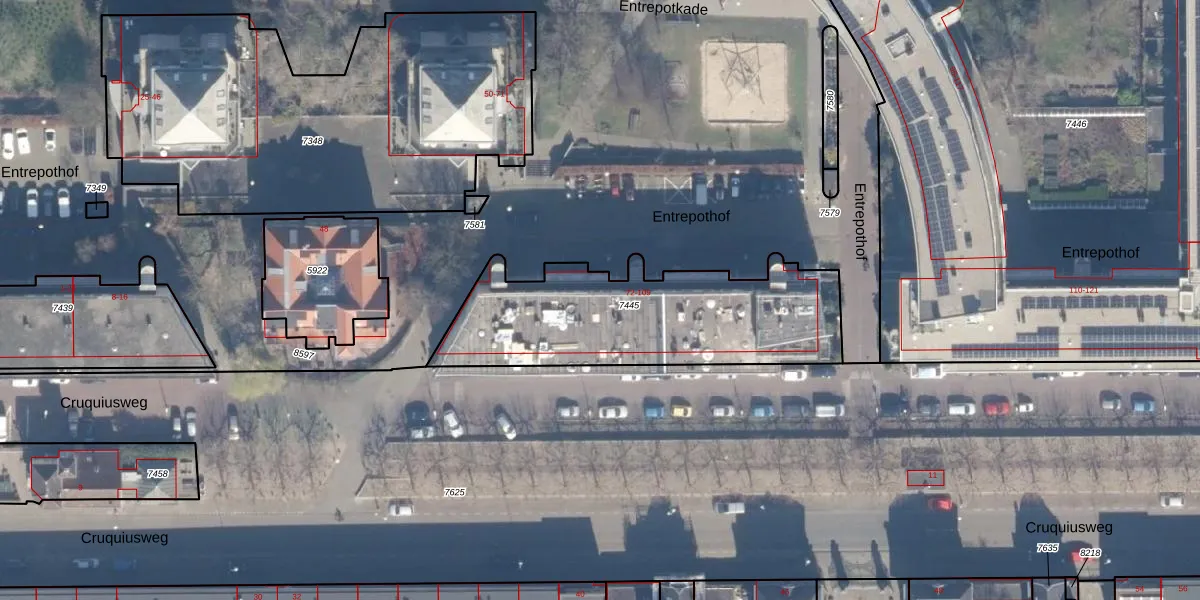Entrepothof 74 is gelegen op kadastraal perceel ASD02A7445. Deze kadastrale aanduiding is uniek en wordt gebruikt door het Kadaster om eigendomsrechten en andere zakelijke rechten vast te leggen. Het perceel maakt onderdeel uit van de kadastrale gemeente Amsterdam.
