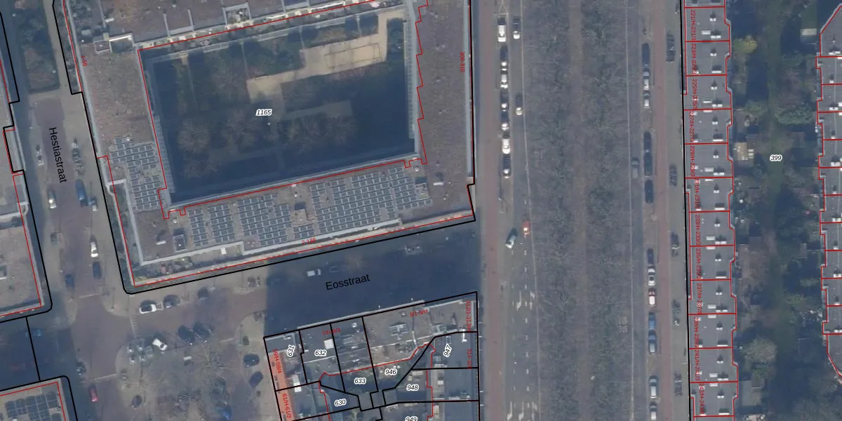 Het perceel waarop Eosstraat 10 staat heeft een oppervlakte van 6883 m². Dit is een zeer groot perceel. De perceeloppervlakte wordt geregistreerd door het Kadaster. Gedetailleerde informatie over de maten van dit perceel kunt u vinden in het rapport Kadastrale kaart met maatvoering van Eosstraat 10.