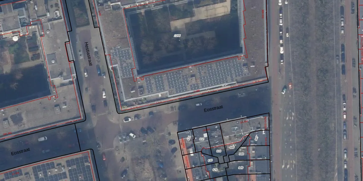 Eosstraat 106 is gelegen op kadastraal perceel ASD24AC1165. Deze kadastrale aanduiding is uniek en wordt gebruikt door het Kadaster om eigendomsrechten en andere zakelijke rechten vast te leggen. Het perceel maakt onderdeel uit van de kadastrale gemeente Amsterdam.