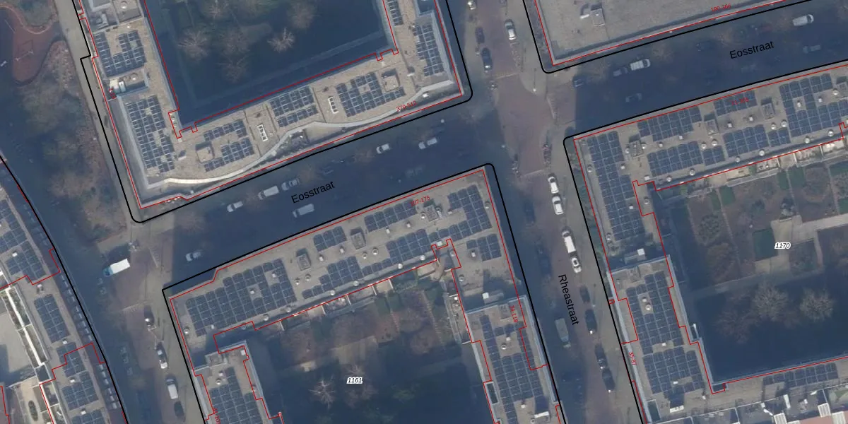 Het perceel waarop Eosstraat 113 staat heeft een oppervlakte van 5945 m². Dit is een zeer groot perceel. De perceeloppervlakte wordt geregistreerd door het Kadaster. Gedetailleerde informatie over de maten van dit perceel kunt u vinden in het rapport Kadastrale kaart met maatvoering van Eosstraat 113.