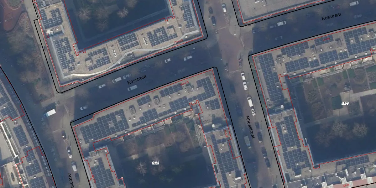 Het perceel waarop Eosstraat 125 staat heeft een oppervlakte van 5945 m². Dit is een zeer groot perceel. De perceeloppervlakte wordt geregistreerd door het Kadaster. Gedetailleerde informatie over de maten van dit perceel kunt u vinden in het rapport Kadastrale kaart met maatvoering van Eosstraat 125.