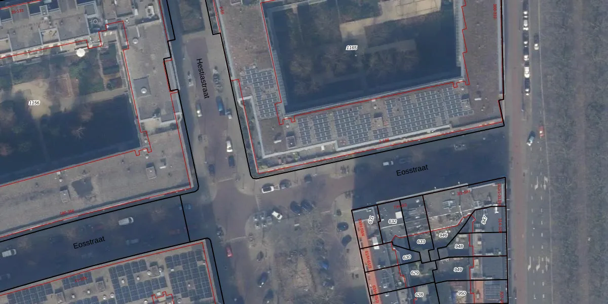 Het perceel waarop Eosstraat 156 staat heeft een oppervlakte van 6883 m². Dit is een zeer groot perceel. De perceeloppervlakte wordt geregistreerd door het Kadaster. Gedetailleerde informatie over de maten van dit perceel kunt u vinden in het rapport Kadastrale kaart met maatvoering van Eosstraat 156.
