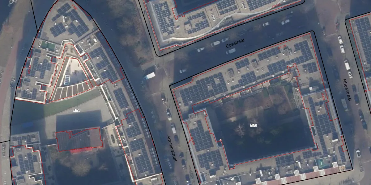 Het perceel waarop Eosstraat 175 staat heeft een oppervlakte van 5945 m². Dit is een zeer groot perceel. De perceeloppervlakte wordt geregistreerd door het Kadaster. Gedetailleerde informatie over de maten van dit perceel kunt u vinden in het rapport Kadastrale kaart met maatvoering van Eosstraat 175.