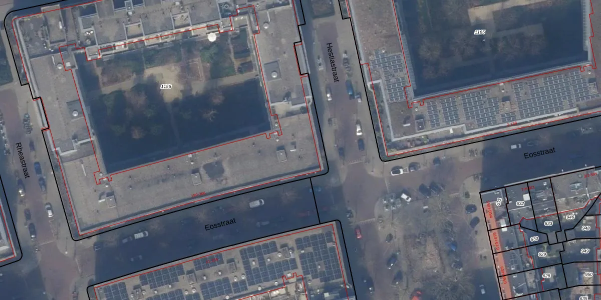 Het adres ligt op het perceel ASD24-AC-1156, dat zich in de kadastrale gemeente Amsterdam bevindt. De gemiddelde perceeloppervlakte in de kadastrale gemeente Amsterdam is 1361,91 m². Dit perceel is met zijn 7000 m² dus groter dan gemiddeld. De grootste perceeloppervlakte in de kadastrale gemeente is 5,8 ha. De kleinste oppervlakte bedraagt 1 m². Er zijn 186 adressen aanwezig op het perceel. De huidige grenzen van het perceel zijn digitaal in de Basisregistratie Kadaster (BRK) geregistreerd op 16-06-2011.