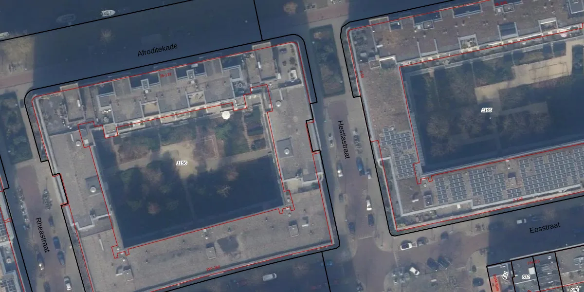 Het adres ligt op het perceel ASD24-AC-1156, dat zich in de kadastrale gemeente Amsterdam bevindt. De gemiddelde perceeloppervlakte in de kadastrale gemeente Amsterdam is 1361,91 m². Dit perceel is met zijn 7000 m² dus groter dan gemiddeld. De grootste perceeloppervlakte in de kadastrale gemeente is 5,8 ha. De kleinste oppervlakte bedraagt 1 m². Op het perceel liggen in totaal 186 adressen. De laatste wijziging in het de Basisregistratie Kadaster (BRK) was op 16-06-2011.
