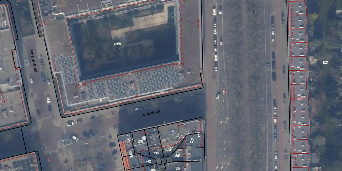 Eosstraat 28 is gelegen op kadastraal perceel ASD24AC1165. Deze kadastrale aanduiding is uniek en wordt gebruikt door het Kadaster om eigendomsrechten en andere zakelijke rechten vast te leggen. Het perceel maakt onderdeel uit van de kadastrale gemeente Amsterdam.