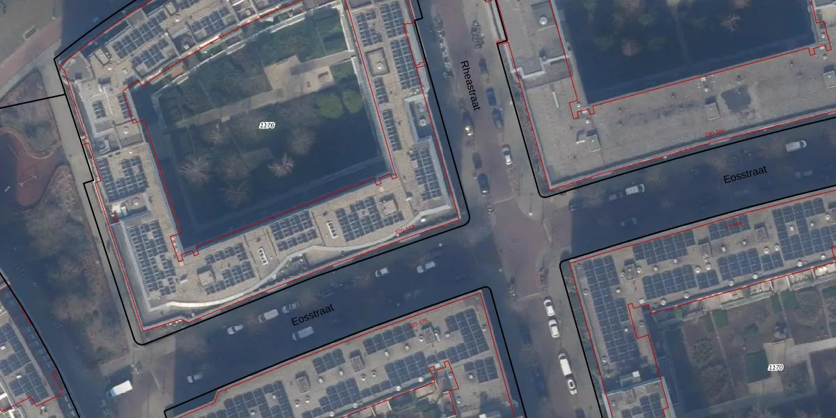 Het perceel waarop Eosstraat 402 staat heeft een oppervlakte van 6826 m². Dit is een zeer groot perceel. De perceeloppervlakte wordt geregistreerd door het Kadaster. Gedetailleerde informatie over de maten van dit perceel kunt u vinden in het rapport Kadastrale kaart met maatvoering van Eosstraat 402.