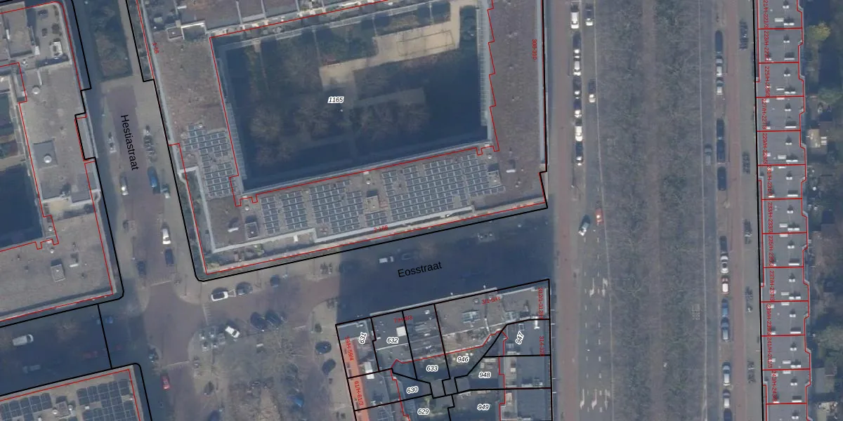 Het perceel waarop Eosstraat 58 staat heeft een oppervlakte van 6883 m². Dit is een zeer groot perceel. De perceeloppervlakte wordt geregistreerd door het Kadaster. Gedetailleerde informatie over de maten van dit perceel kunt u vinden in het rapport Kadastrale kaart met maatvoering van Eosstraat 58.