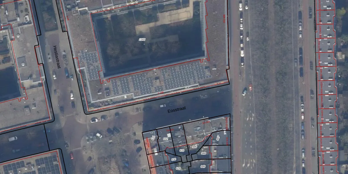 Het perceel waarop Eosstraat 62 staat heeft een oppervlakte van 6883 m². Dit is een zeer groot perceel. De perceeloppervlakte wordt geregistreerd door het Kadaster. Gedetailleerde informatie over de maten van dit perceel kunt u vinden in het rapport Kadastrale kaart met maatvoering van Eosstraat 62.