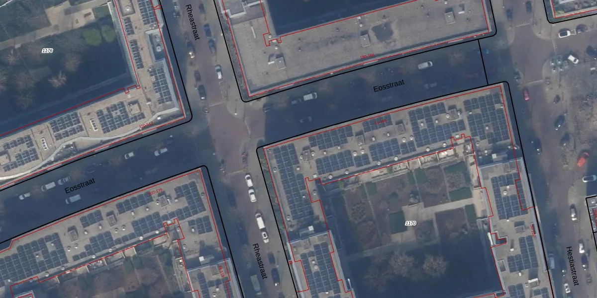 Het perceel waarop Eosstraat 83 staat heeft een oppervlakte van 7035 m². Dit is een zeer groot perceel. De perceeloppervlakte wordt geregistreerd door het Kadaster. Gedetailleerde informatie over de maten van dit perceel kunt u vinden in het rapport Kadastrale kaart met maatvoering van Eosstraat 83.