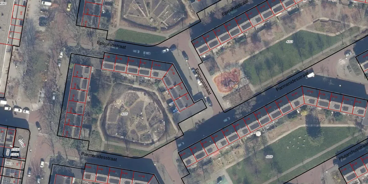 Epicurusstraat 25 is gelegen op kadastraal perceel STN02D4315. Deze kadastrale aanduiding is uniek en wordt gebruikt door het Kadaster om eigendomsrechten en andere zakelijke rechten vast te leggen. Het perceel maakt onderdeel uit van de kadastrale gemeente Sloten Noord-Holland.