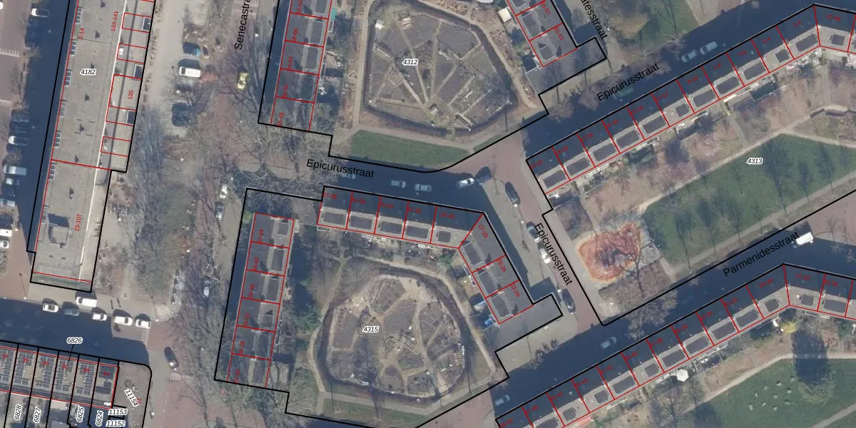 Het perceel waarop Epicurusstraat 31 staat heeft een oppervlakte van 3260 m². Dit is een zeer groot perceel. De perceeloppervlakte wordt geregistreerd door het Kadaster. Gedetailleerde informatie over de maten van dit perceel kunt u vinden in het rapport Kadastrale kaart met maatvoering van Epicurusstraat 31.