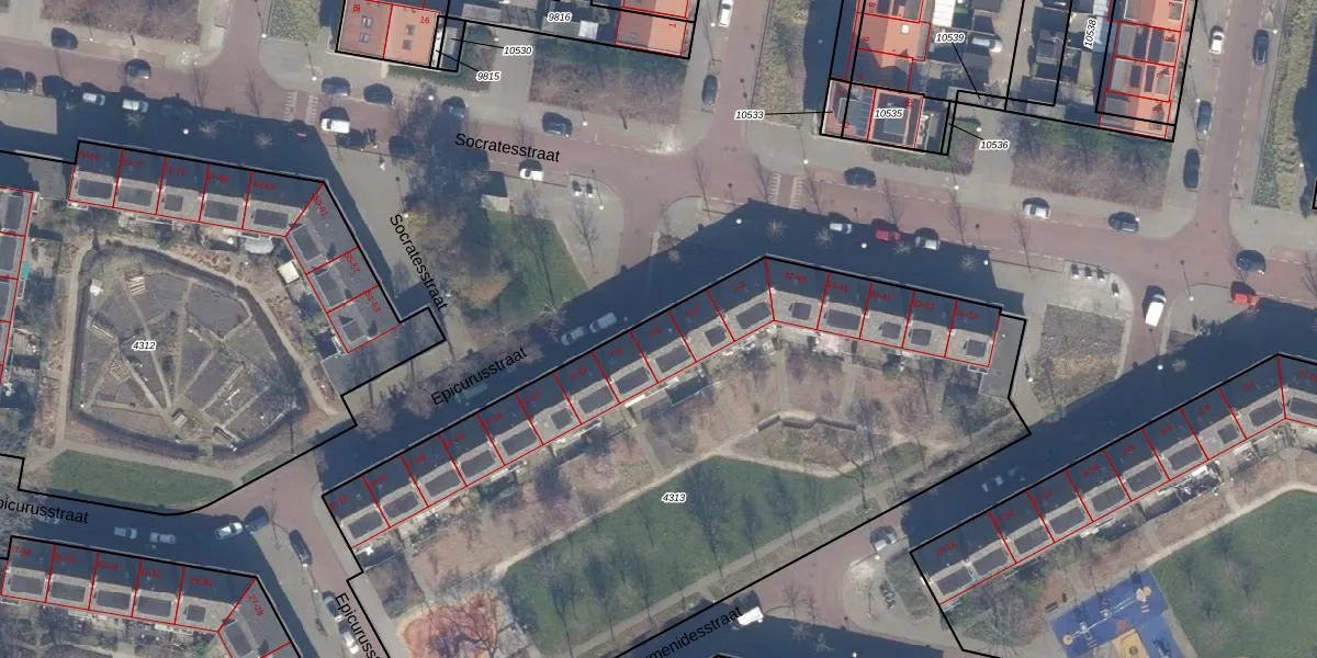 Epicurusstraat 5 is gelegen op kadastraal perceel STN02D4313. Deze kadastrale aanduiding is uniek en wordt gebruikt door het Kadaster om eigendomsrechten en andere zakelijke rechten vast te leggen. Het perceel maakt onderdeel uit van de kadastrale gemeente Sloten Noord-Holland.