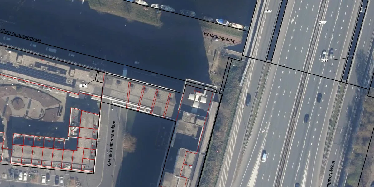 Het perceel waarop Erasmusgracht 75 staat heeft een oppervlakte van 4797 m². Dit is een zeer groot perceel. De perceeloppervlakte wordt geregistreerd door het Kadaster. Gedetailleerde informatie over de maten van dit perceel kunt u vinden in het rapport Kadastrale kaart met maatvoering van Erasmusgracht 75.
