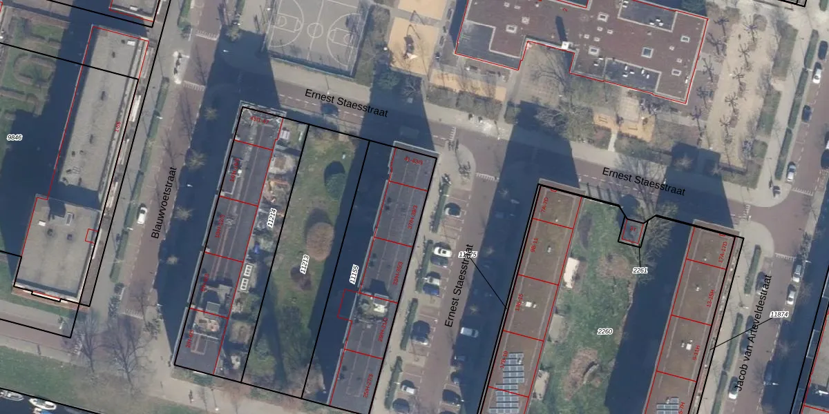 Het perceel waarop Ernest Staesstraat 39-1 staat heeft een oppervlakte van 1080 m². Dit is een zeer groot perceel. De perceeloppervlakte wordt geregistreerd door het Kadaster. Gedetailleerde informatie over de maten van dit perceel kunt u vinden in het rapport Kadastrale kaart met maatvoering van Ernest Staesstraat 39-1.