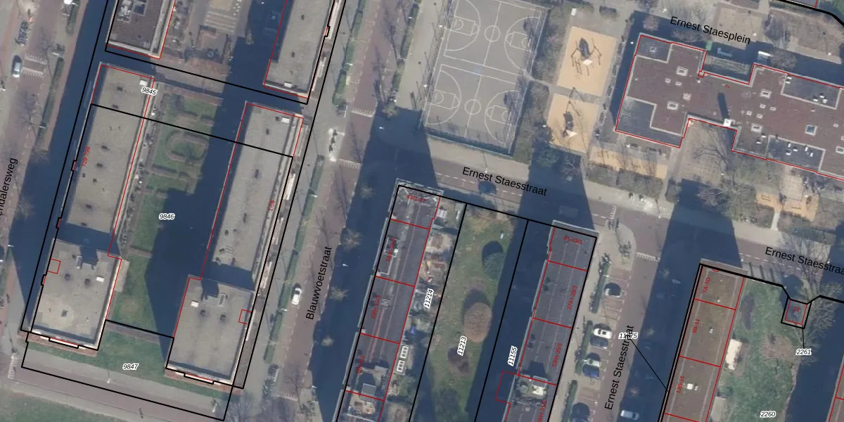 Het perceel waarop Ernest Staesstraat 45-2 staat heeft een oppervlakte van 1073 m². Dit is een zeer groot perceel. De perceeloppervlakte wordt geregistreerd door het Kadaster. Gedetailleerde informatie over de maten van dit perceel kunt u vinden in het rapport Kadastrale kaart met maatvoering van Ernest Staesstraat 45-2.