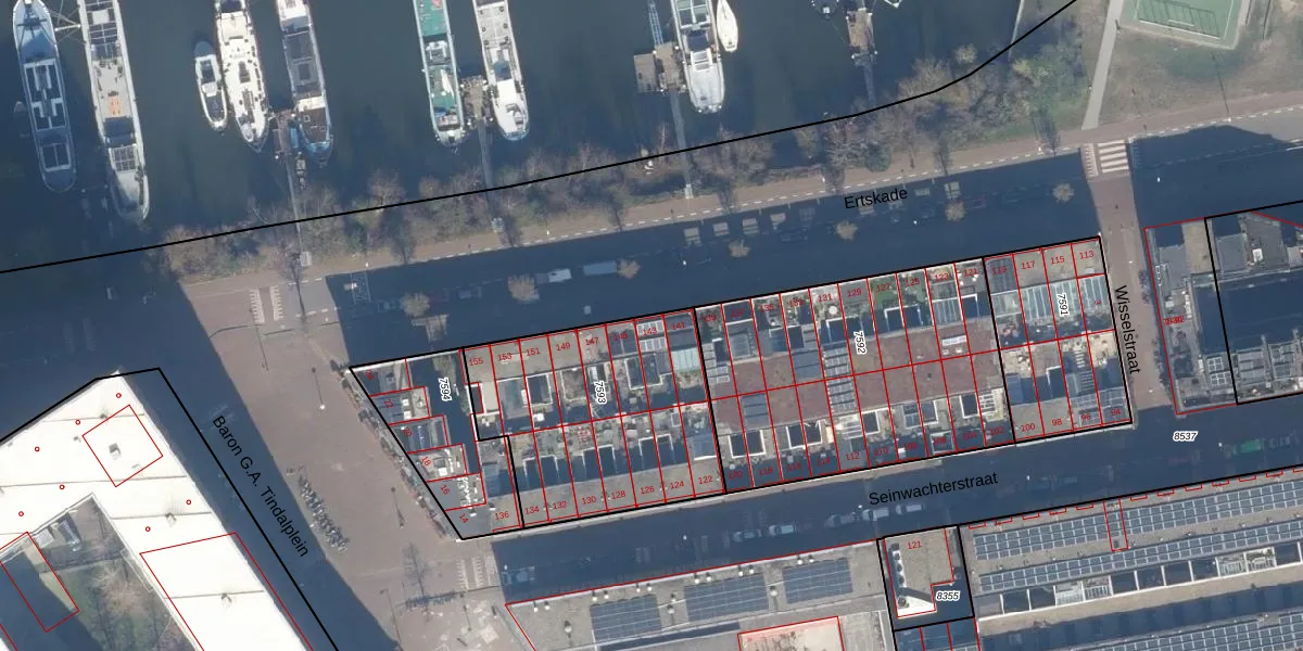 Het adres is gelegen op perceel 7593 in de sectie A en de kadastrale gemeente Amsterdam. De kadastrale aanduiding is aldus ASD02-A-7593. De gemiddelde perceelgrootte in Amsterdam is 2763,93 m². Dit perceel is kleiner: de perceeloppervlakte bedraagt 980 m². De grootste perceeloppervlakte in de kadastrale gemeente is 14,3 ha. De kleinste oppervlakte bedraagt 0 m². Op het perceel zijn 15 adressen aanwezig. De huidige grenzen van het perceel zijn digitaal in de Basisregistratie Kadaster (BRK) geregistreerd op 11-10-2006.
