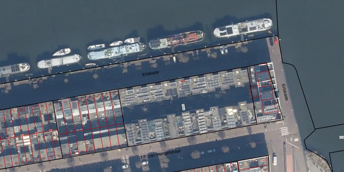 Het perceel waarop Ertskade 29 staat heeft een oppervlakte van 2574 m². Dit is een zeer groot perceel. De perceeloppervlakte wordt geregistreerd door het Kadaster. Gedetailleerde informatie over de maten van dit perceel kunt u vinden in het rapport Kadastrale kaart met maatvoering van Ertskade 29.
