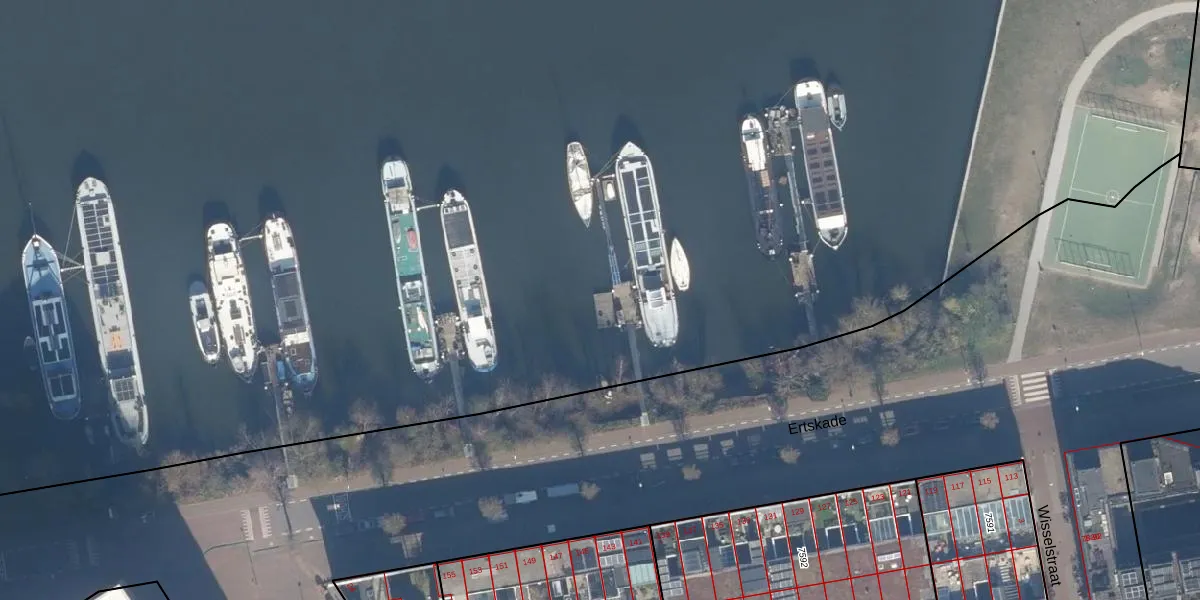 Het perceel waarop Ertskade 348 staat heeft een oppervlakte van 12,3 ha. Dit is een zeer groot perceel. De perceeloppervlakte wordt geregistreerd door het Kadaster. Gedetailleerde informatie over de maten van dit perceel kunt u vinden in het rapport Kadastrale kaart met maatvoering van Ertskade 348.
