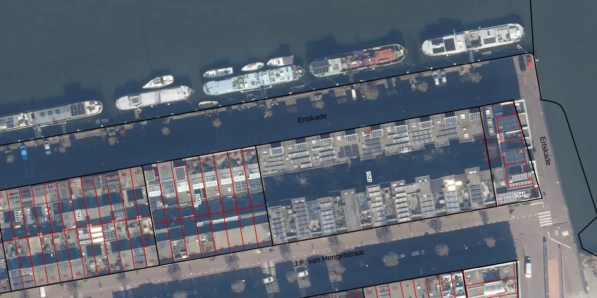 Het perceel waarop Ertskade 37 staat heeft een oppervlakte van 2574 m². Dit is een zeer groot perceel. De perceeloppervlakte wordt geregistreerd door het Kadaster. Gedetailleerde informatie over de maten van dit perceel kunt u vinden in het rapport Kadastrale kaart met maatvoering van Ertskade 37.