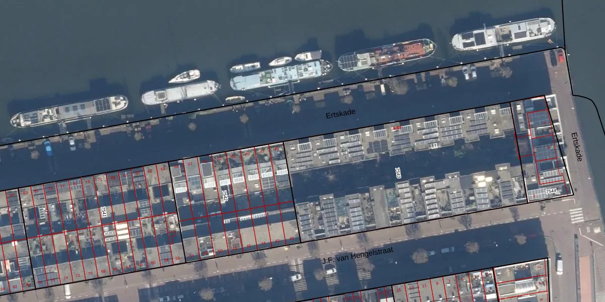 Het perceel waarop Ertskade 41 staat heeft een oppervlakte van 2574 m². Dit is een zeer groot perceel. De perceeloppervlakte wordt geregistreerd door het Kadaster. Gedetailleerde informatie over de maten van dit perceel kunt u vinden in het rapport Kadastrale kaart met maatvoering van Ertskade 41.