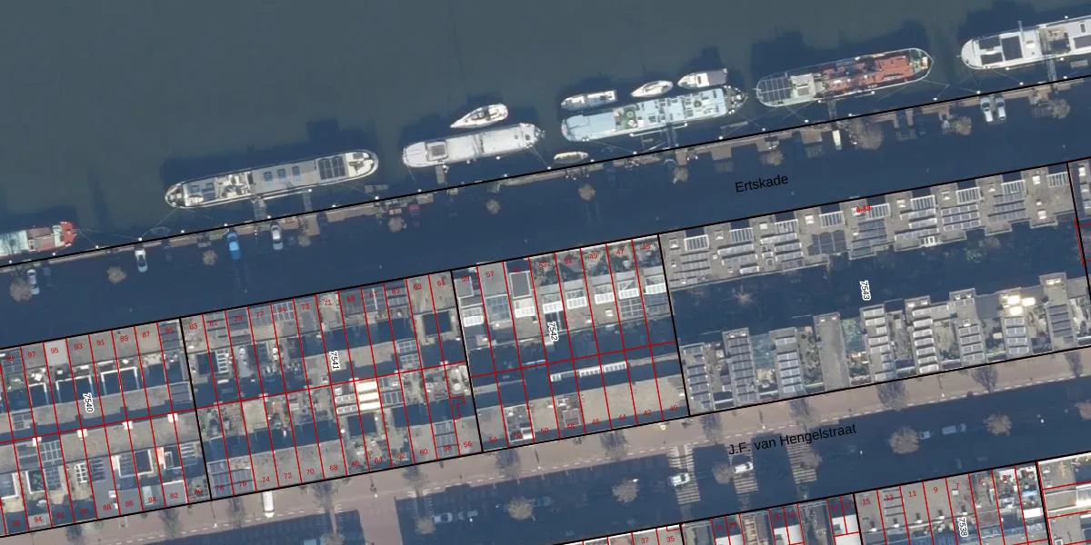 Ertskade 53 is gelegen op kadastraal perceel ASD02A7542. Deze kadastrale aanduiding is uniek en wordt gebruikt door het Kadaster om eigendomsrechten en andere zakelijke rechten vast te leggen. Het perceel maakt onderdeel uit van de kadastrale gemeente Amsterdam.
