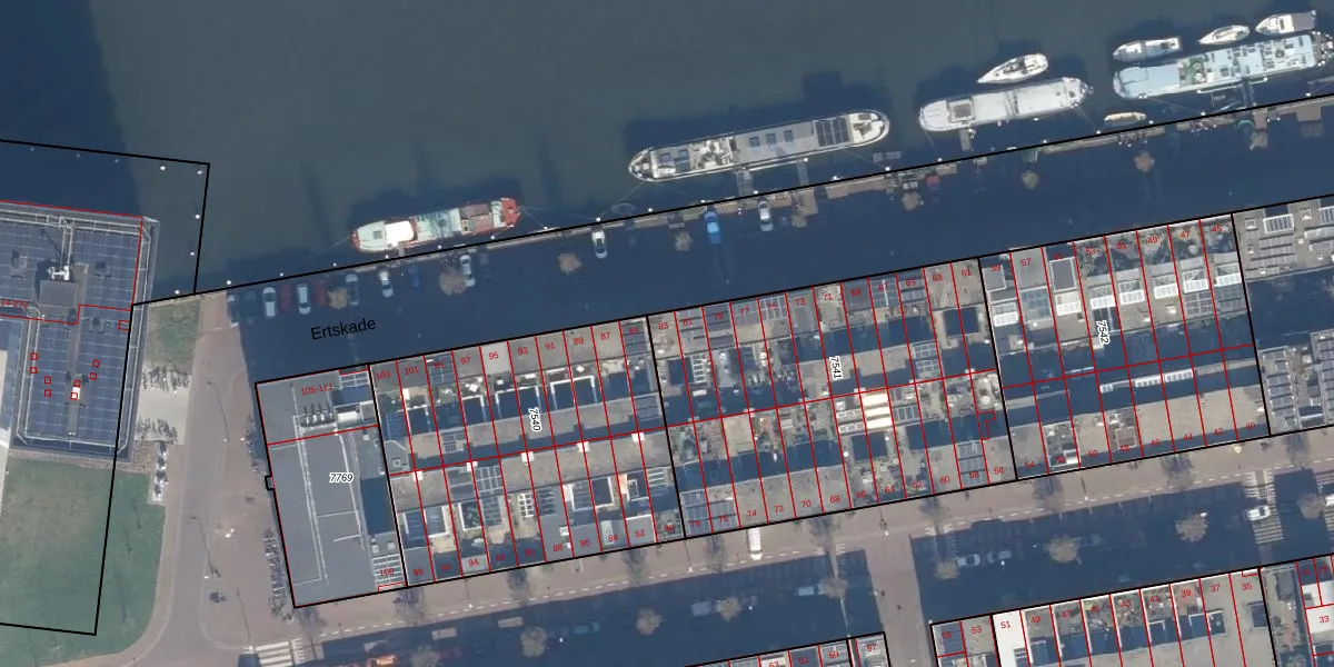 Het perceel waarop Ertskade 83 staat heeft een oppervlakte van 1723 m². Dit is een zeer groot perceel. De perceeloppervlakte wordt geregistreerd door het Kadaster. Gedetailleerde informatie over de maten van dit perceel kunt u vinden in het rapport Kadastrale kaart met maatvoering van Ertskade 83.