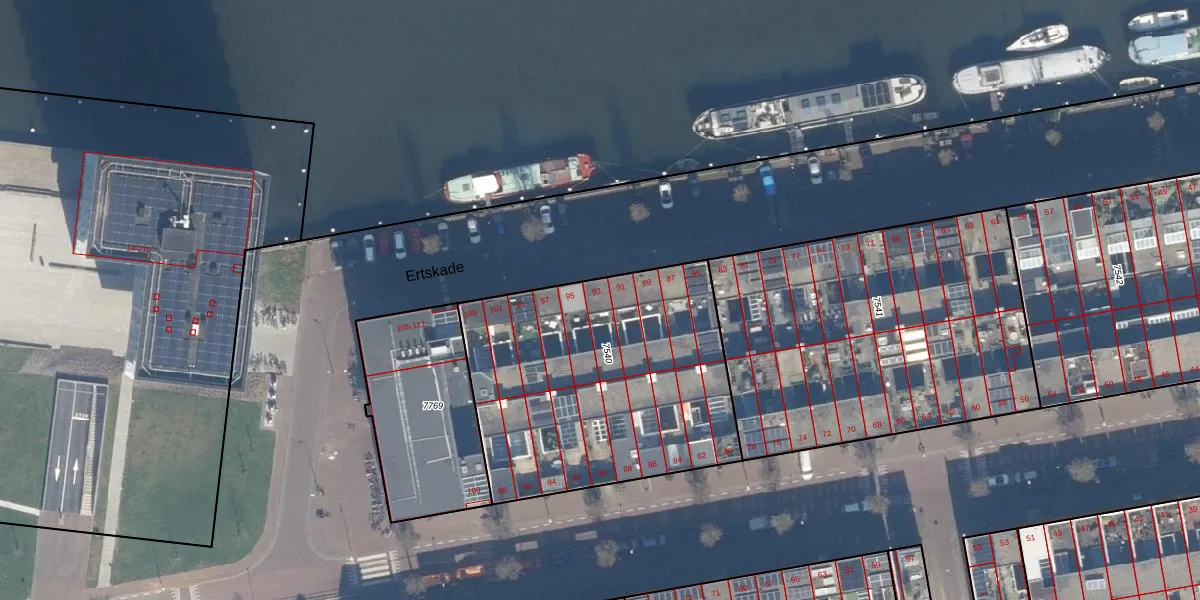 Het perceel waarop Ertskade 93 staat heeft een oppervlakte van 1437 m². Dit is een zeer groot perceel. De perceeloppervlakte wordt geregistreerd door het Kadaster. Gedetailleerde informatie over de maten van dit perceel kunt u vinden in het rapport Kadastrale kaart met maatvoering van Ertskade 93.