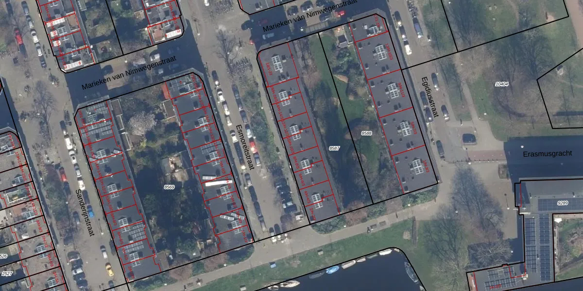 Esmoreitstraat 10-2 is gelegen op kadastraal perceel STN02C8587. Deze kadastrale aanduiding is uniek en wordt gebruikt door het Kadaster om eigendomsrechten en andere zakelijke rechten vast te leggen. Het perceel maakt onderdeel uit van de kadastrale gemeente Sloten Noord-Holland.