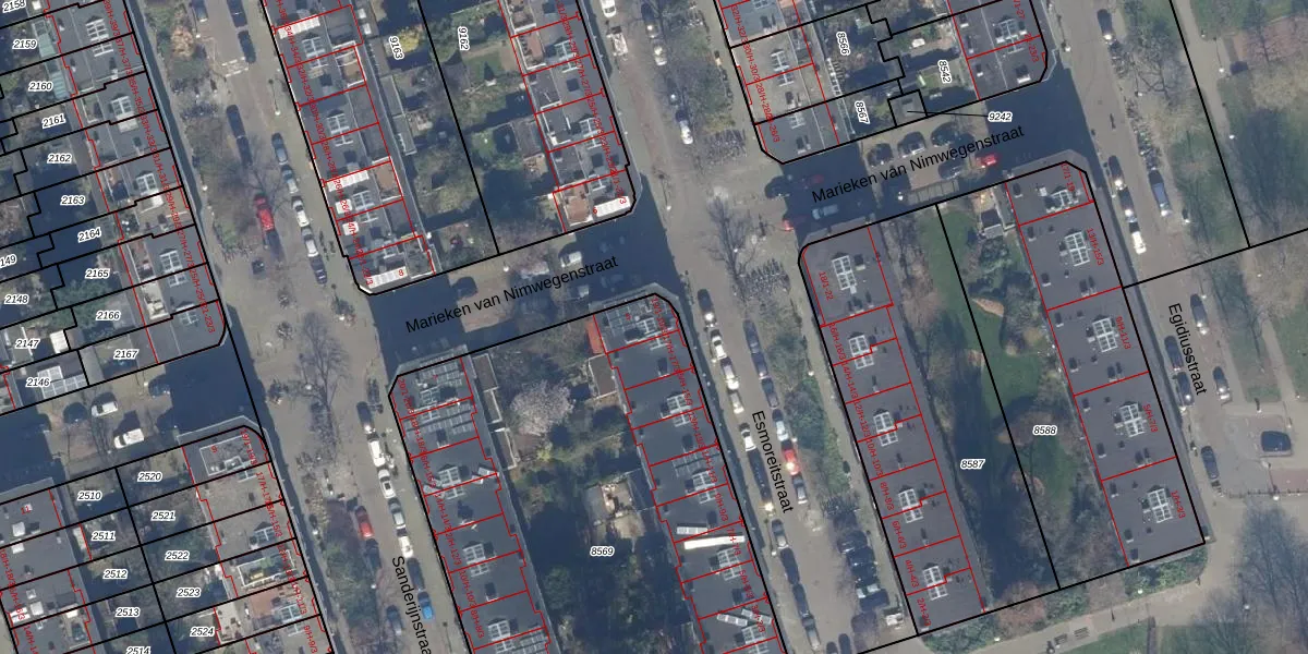 Esmoreitstraat 19-1 is gelegen op kadastraal perceel STN02C8569. Deze kadastrale aanduiding is uniek en wordt gebruikt door het Kadaster om eigendomsrechten en andere zakelijke rechten vast te leggen. Het perceel maakt onderdeel uit van de kadastrale gemeente Sloten Noord-Holland.