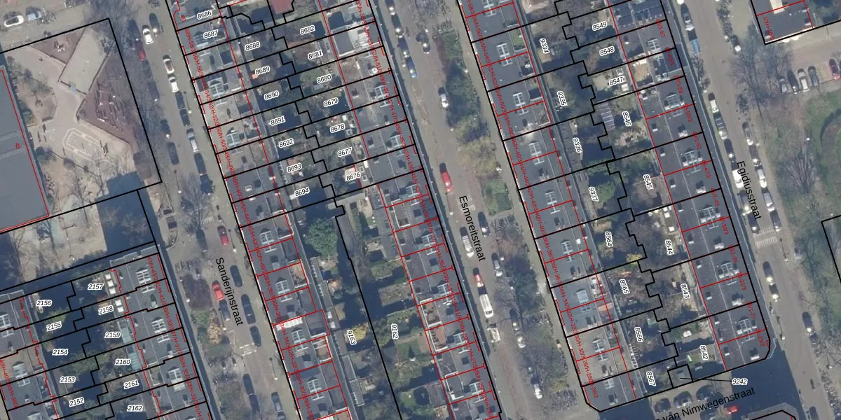 Het perceel waarop Esmoreitstraat 39-2 staat heeft een oppervlakte van 1550 m². Dit is een zeer groot perceel. De perceeloppervlakte wordt geregistreerd door het Kadaster. Gedetailleerde informatie over de maten van dit perceel kunt u vinden in het rapport Kadastrale kaart met maatvoering van Esmoreitstraat 39-2.