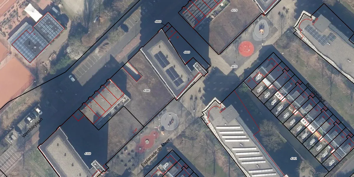 Het perceel waarop Esplanade de Meer 101 staat heeft een oppervlakte van 1885 m². Dit is een zeer groot perceel. De perceeloppervlakte wordt geregistreerd door het Kadaster. Gedetailleerde informatie over de maten van dit perceel kunt u vinden in het rapport Kadastrale kaart met maatvoering van Esplanade de Meer 101.